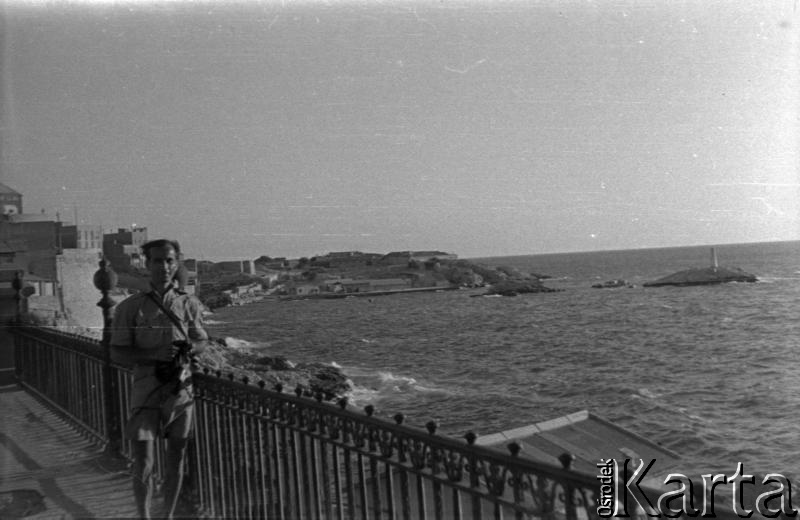 Karol Świeczewski frente al océano. La foto fue tomada por su esposa Maria Świeczewska. Ambos emigraron a Argentina después de la guerra. El matrimonio tuvo una gran amistad con el escritor Witold Gombrowicz.