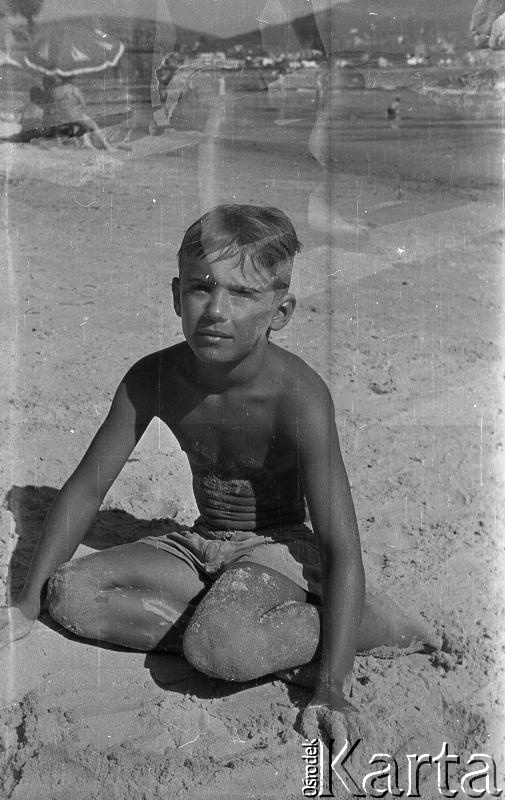 Chłopiec nad morzem. Fotografia wykonana przez Marię Świeczewską lub jej męża Karola. Oboje po wojnie wyemigrowali do Argentyny. Małżeństwo przyjaźniło się z pisarzem Witoldem Gombrowiczem.